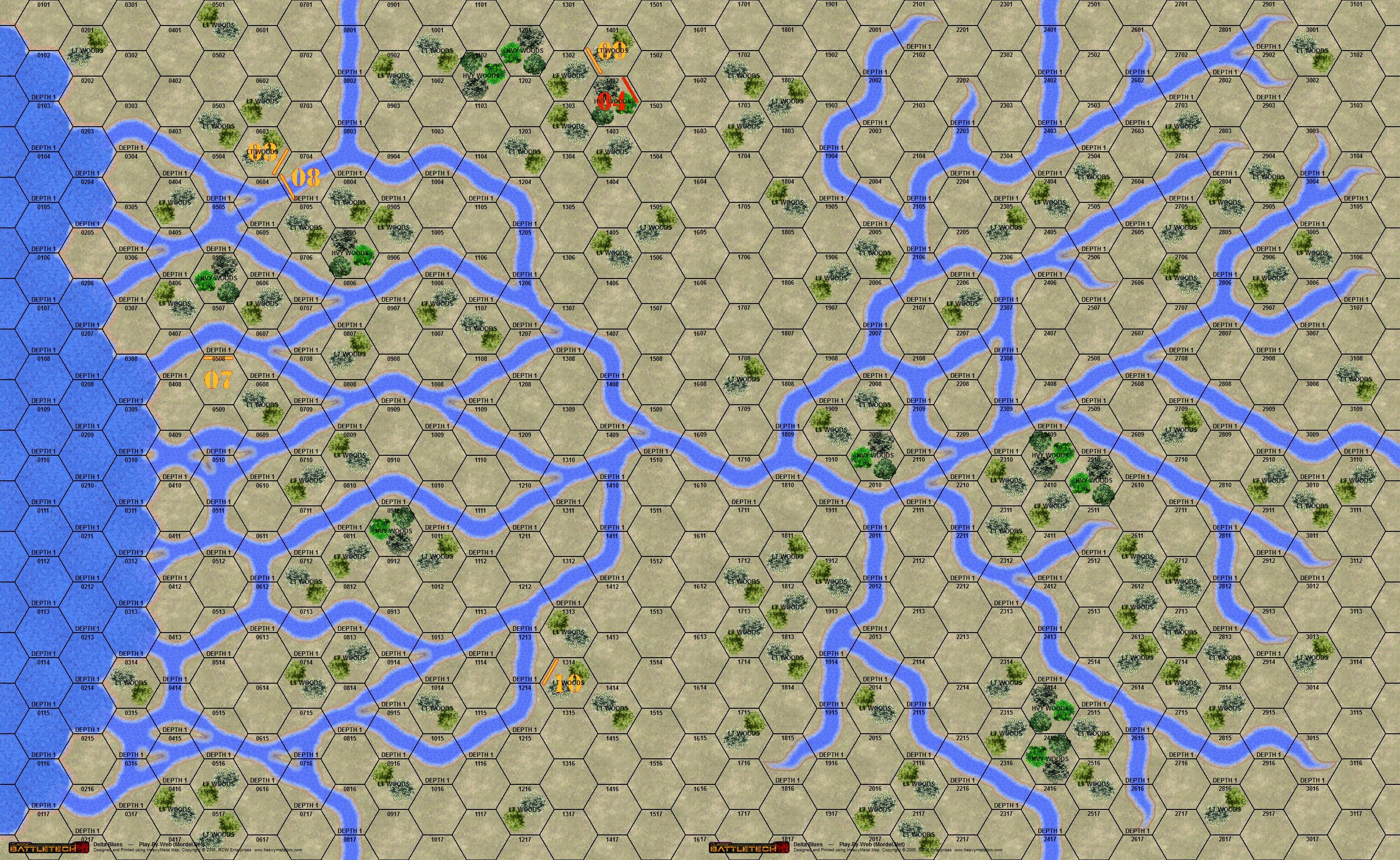 Results for turn 19 firing as well as the turn 20 initiative order are posted in the tables below. All unit PDF files, along with the latest point and kill totals, have been updated and posted in the main post for this game. The latest map is attached to the end of this post.